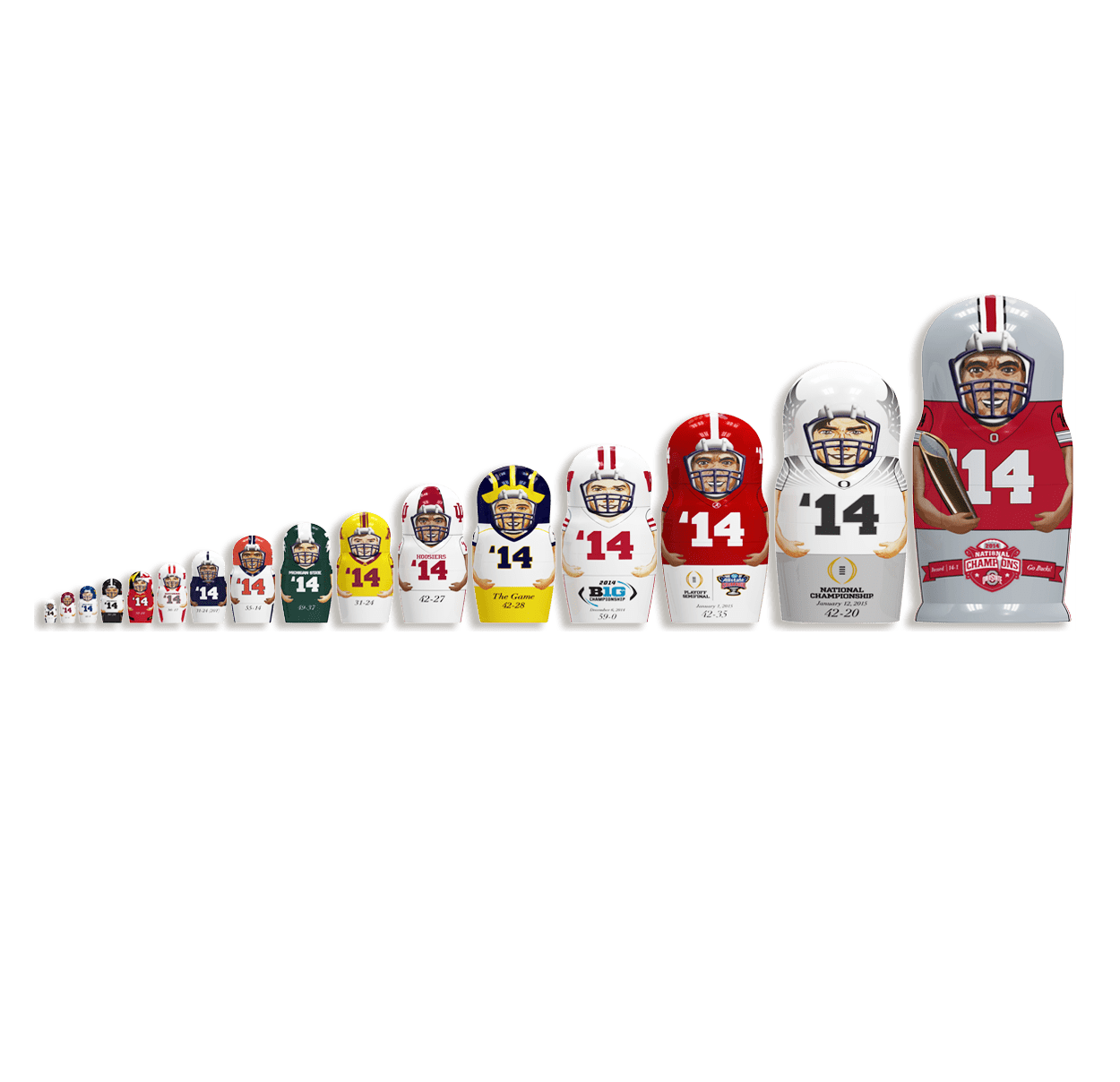 - 1-foot tall Buckeye holding the CFP Trophy